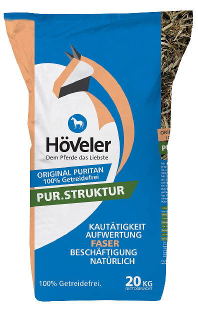 Dzięki swojemu unikalnemu składowi HÖVELER Pur.Struktur nadaje się do wzbogacenia w włókno paszy pełnoporcjowej jak również do uzupełnienia (ulepszenia) skarmiania koni sianem zarówno pod względem ilościowym, jak i jakościowym.