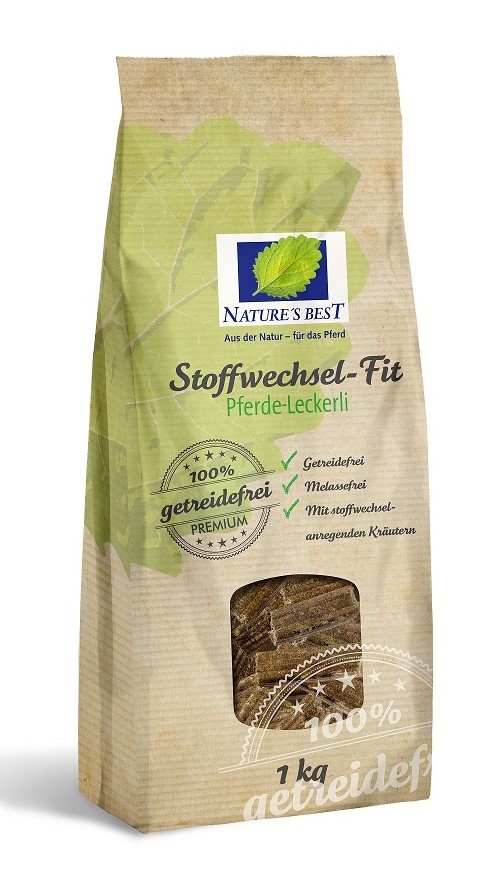 Nasze nowe smaczki Nature´s Best Stoffwechsel Fit nie zawierają konserwantów, ziaren zbóż i melasy. Dzięki tym właściwością nadają się szczególnie dla koni, mających tendencję do tycia lub z problemami metabolicznymi, takimi jak EMS, PSSM, Cushing lub z ochwatem. Nasze smaczki stanowią wyjątkowo zdrową alternatywę dla tradycyjnej kostki cukru.