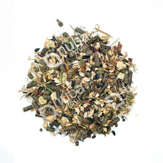• komponenty włókniste jak lucerna, otręby, wysłodki buraczane, łuska słonecznika, wytłoki jabłkowe i suszone warzywa dodają wolno uwalnianej energii,