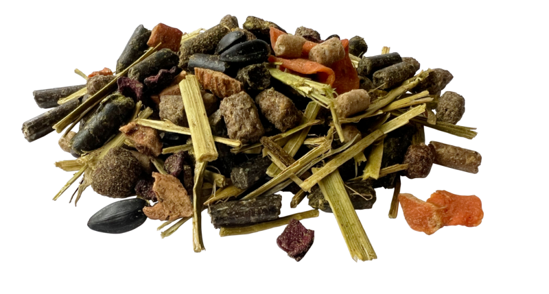 • Wysoka zawartość błonnika, stymulująca żucie, niezbędne dla zdrowego trawienia