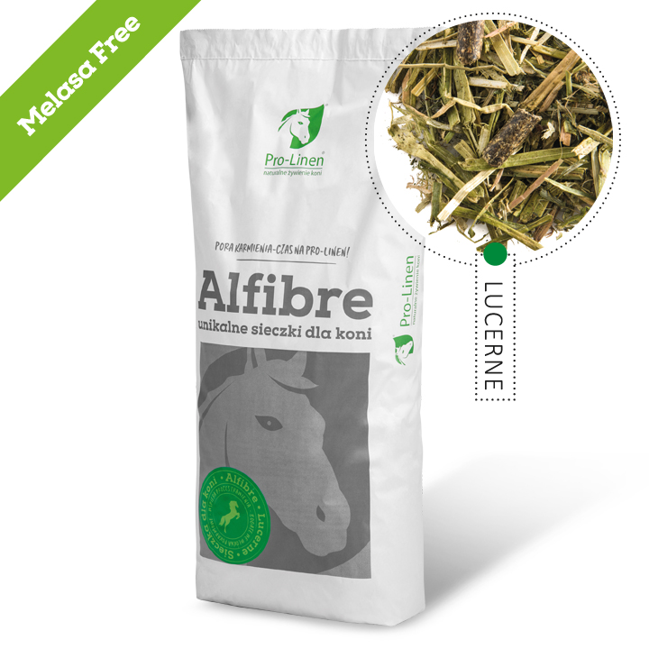 Pro-Linen® Alfibre Lucerne™ zawiera duże ilości aminokwasów egzogennych oraz wapnia odznaczającego się wysoką przyswajalnością. Pierwiastka tego brakuje w paszach zbożowych, co czyni z Alfibre Lucerne™ cenną paszą szczególnie dla młodych, rosnących koni jak również klaczy źrebnych i karmiących.