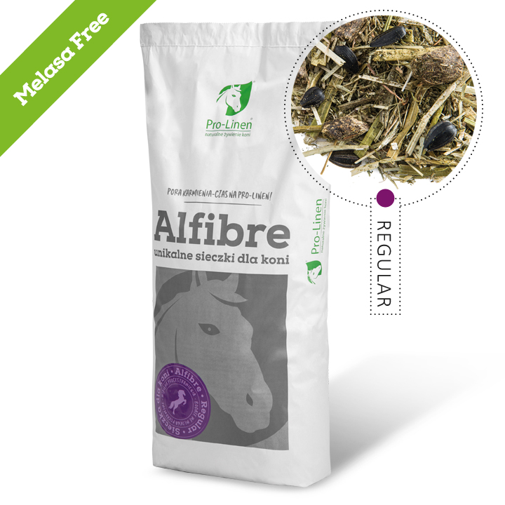 Wprowadź na stałe do diety swojego konia sieczkę Pro-Linen® Alfibre Regular™, a zaspokoisz jego naturalne potrzeby. Ciesz się jego zdrowiem i świetną kondycją. Stosuj ją regularnie, a szybko zobaczysz efekty.
