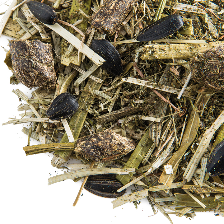 Sieczka z lucerny urozmaicona minerałami, trawami niskocukrowymi oraz komponentami zasobnymi we włókna pokarmowe.
