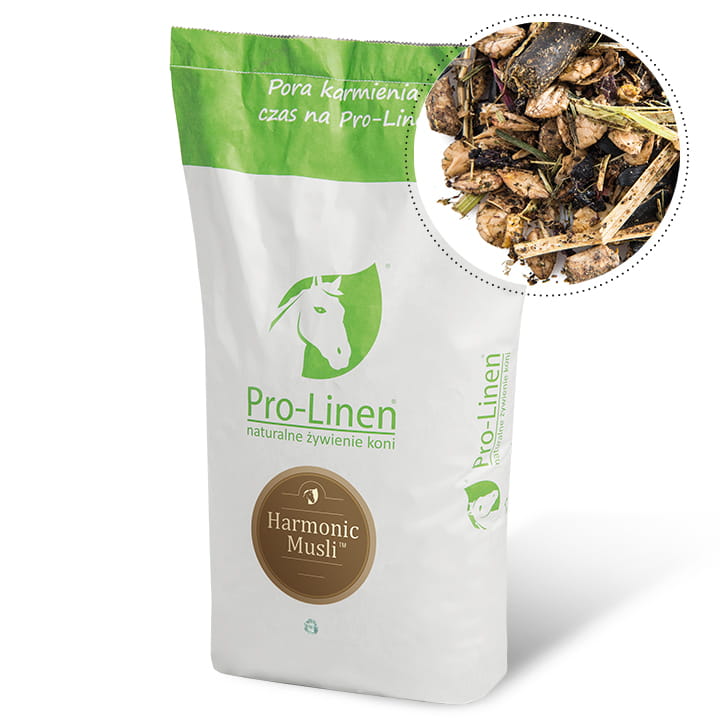 Specyficzny rodzaj wysiłku, jakiemu poddawane są konie w ujeżdżeniu, wymaga indywidualnego podejścia żywieniowego. Harmonic Musli™ jest paszą strukturalną wolną od owsa, w zamian za to zawierającą komponenty bogate we włókno. Wysoki udział lucerny i suszu owocowego oraz wysłodków buraczanych pomógł w mieszance obniżyć zawartość skrobi, dzięki czemu podawana pasza nie powoduje u koni efektu nadpobudliwości. Dodatek wartościowych olejów w połączeniu z dużą zawartością włókien pokarmowych zapewnia odpowiedni poziom energii, która jest wolno uwalniana.